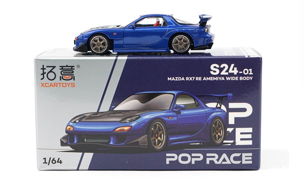 Poprace 1:64 Blue JDM RX-7 FD RE Amemiya Sports Model Diecast Metal Car New Collection