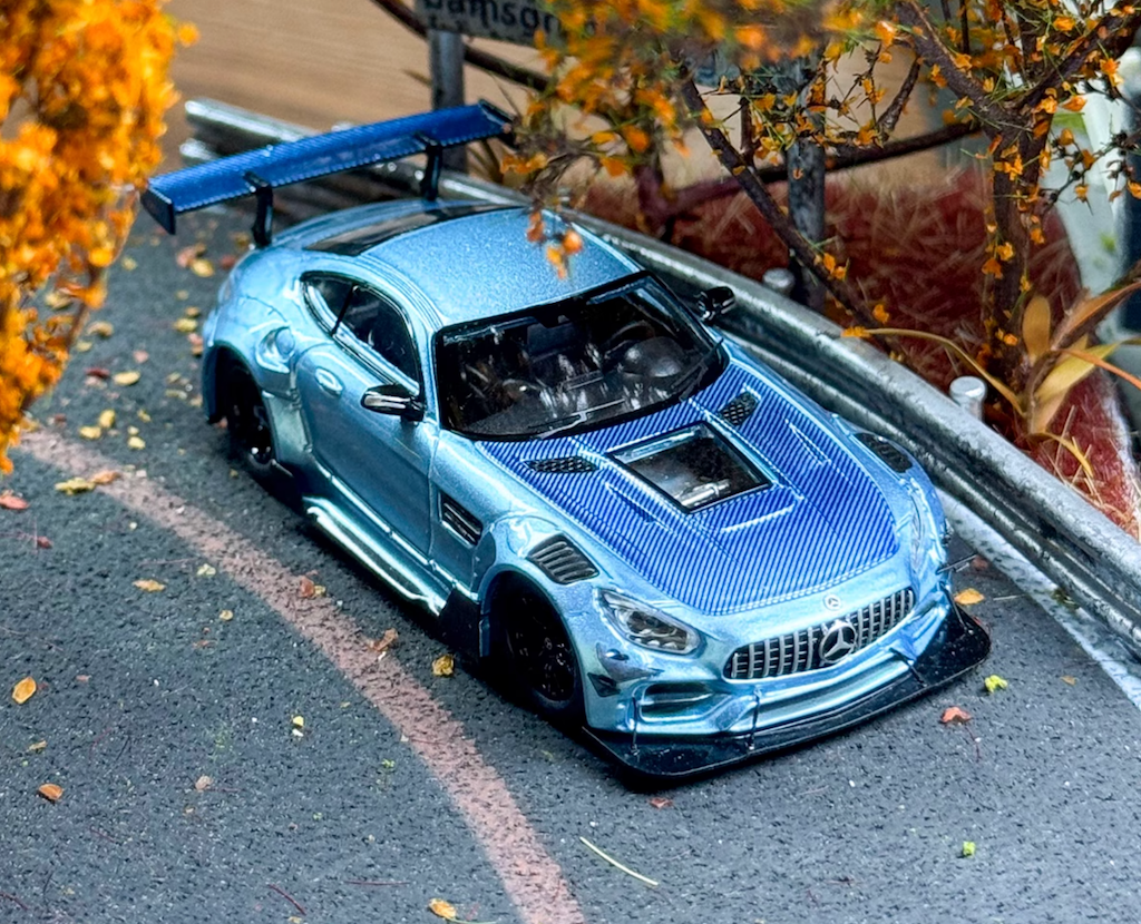 RM 1:64 Blue AMG GTS Widebody Racing Sports Model Diecast Metal Car New Collection