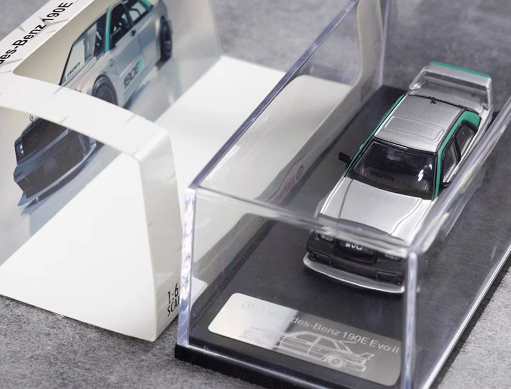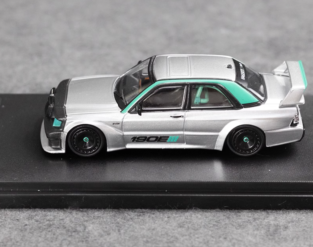 RM 1:64 Silver 190E W201 Evo II Sports Sedan Model Diecast Metal Car New Collection