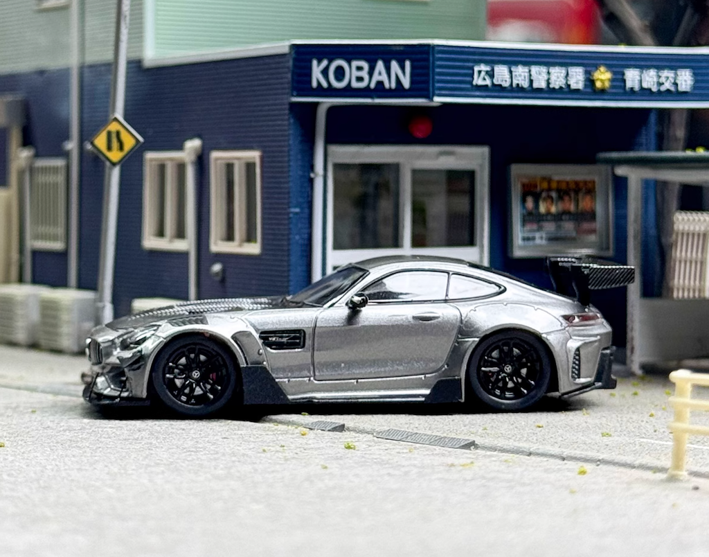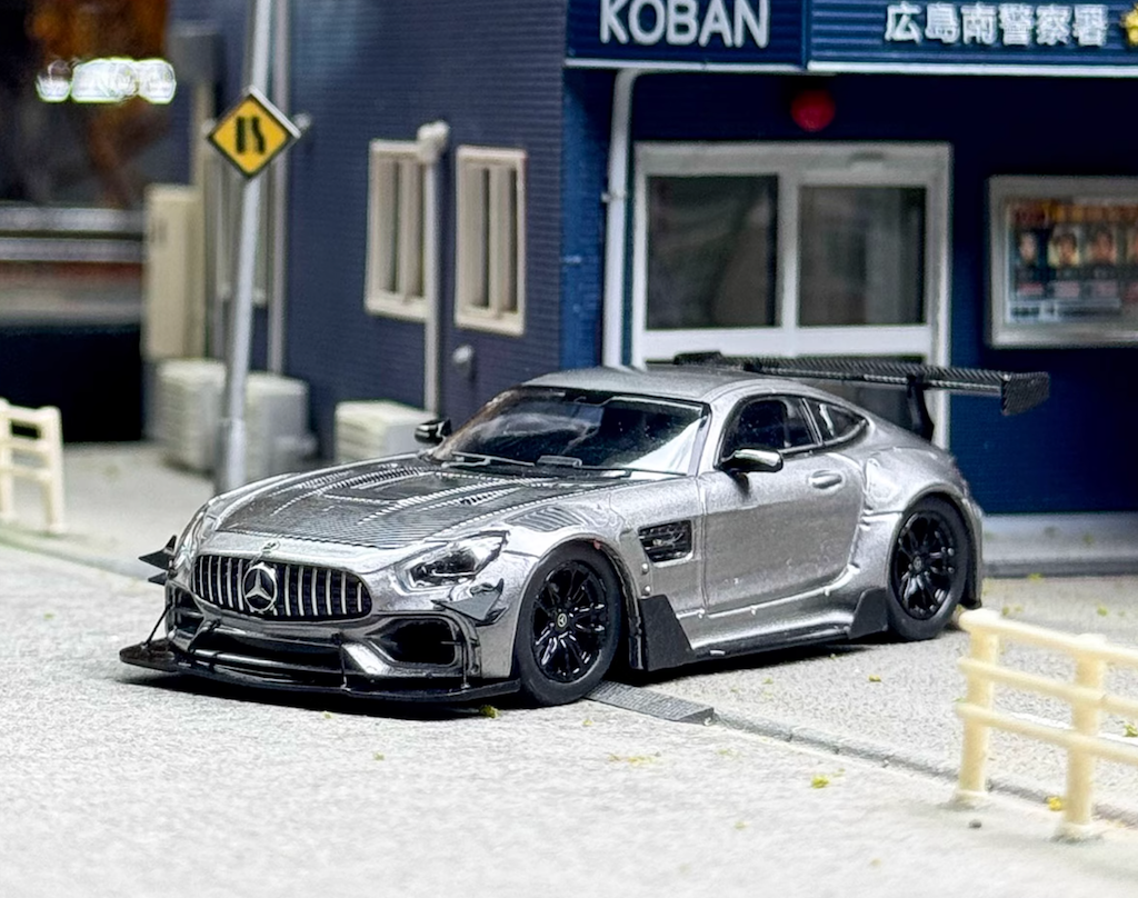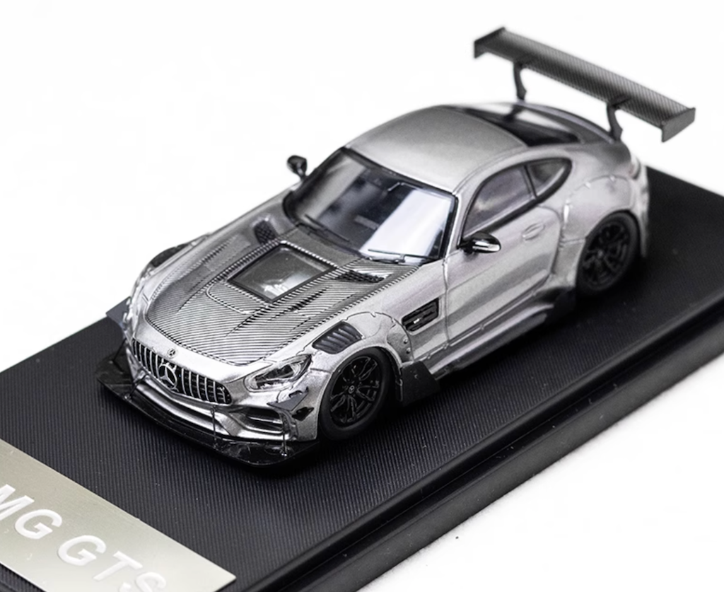 RM 1:64 Silver AMG GTS Widebody Racing Sports Model Diecast Metal Car New Collection