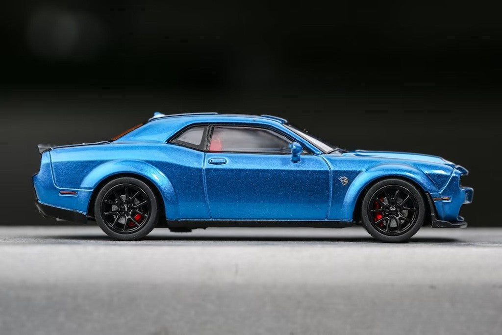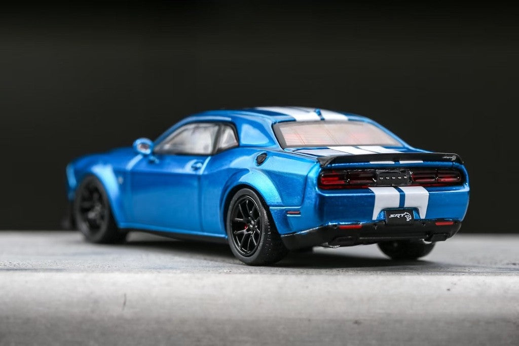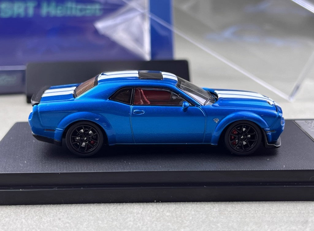 SH 1:64 Blue Stripe Challenger SRT Muscle Hellcat Model Diecast Metal Car New Collection