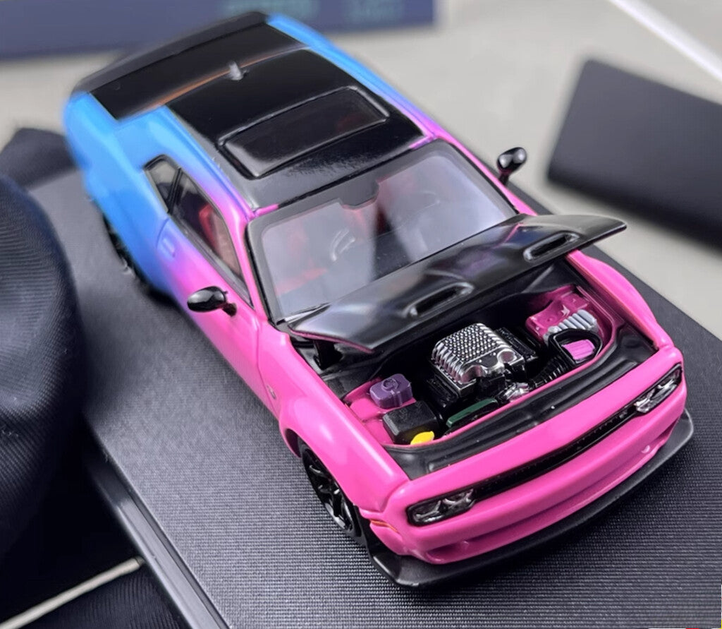 SH 1:64 Pink Blue Challenger SRT Hellcat Sports Model Diecast Metal Car New Collection