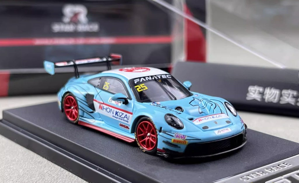 SR 1:64 Baby Blue 911 GT3 R #25 Racing Sports Model Diecast Metal Car New Collection