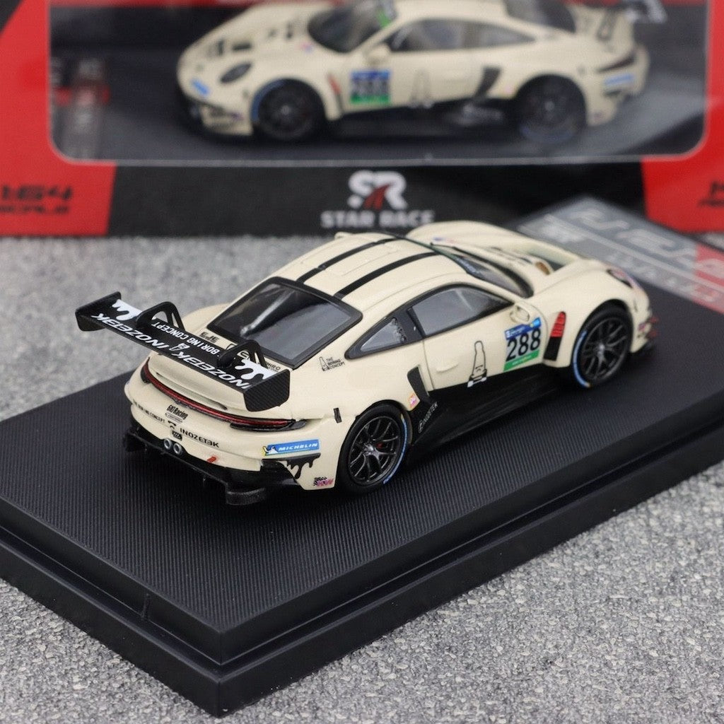 SR 1:64 Beige 911 GT3 R #288 Racing Sports Model Diecast Metal Car New Collection