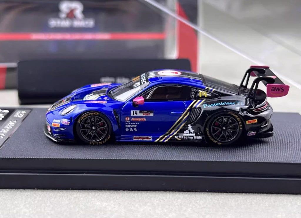SR 1:64 Blue 911 GT3 R #14 Racing Sports Model Diecast Metal Car New Collection
