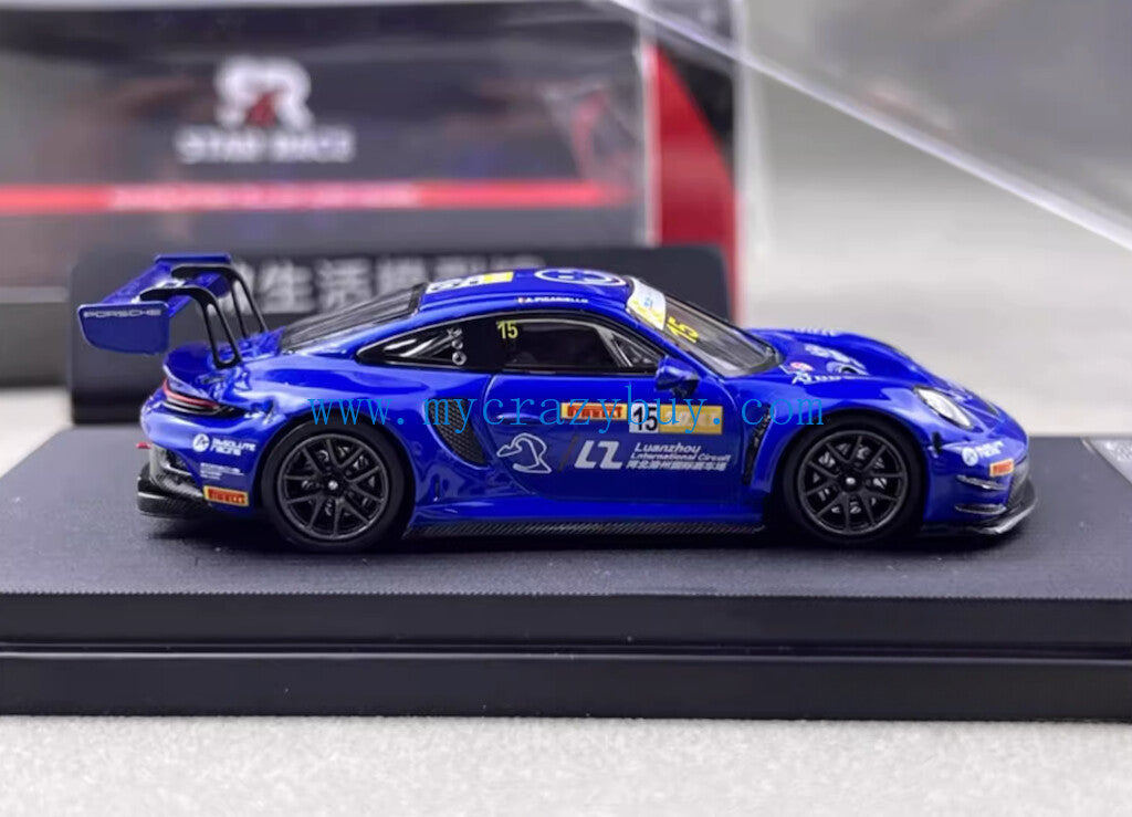 SR 1:64 Blue 911 GT3 R #15 Racing Sports Model Diecast Metal Car New Collection