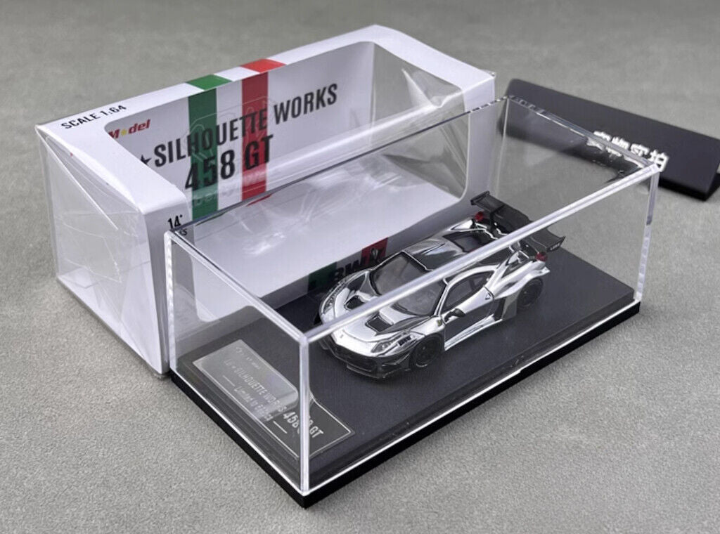 Star 1:64 Plating Silver 458 GT LBWK Racing Sports Model Diecast Metal Car New Collecction
