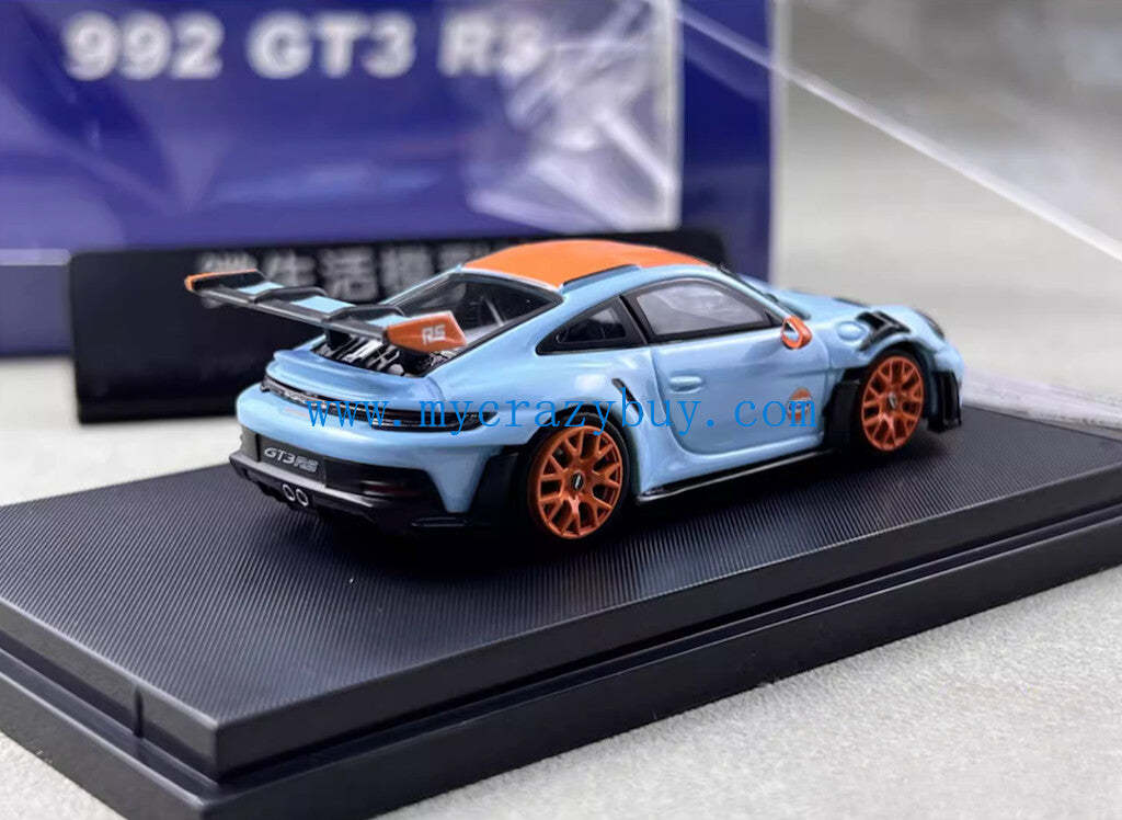 SW 1:64 Blue Gulf 992 GT3 RS Sports Model Diecast Metal Car New Collection