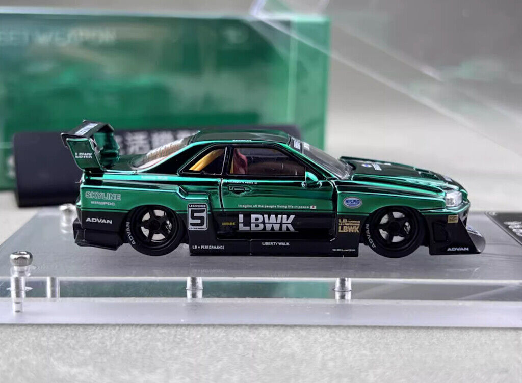 SW 1:64 Green LBWK ER34 #5 GTR Skyline Sports Model Diecast Metal Car New Collection