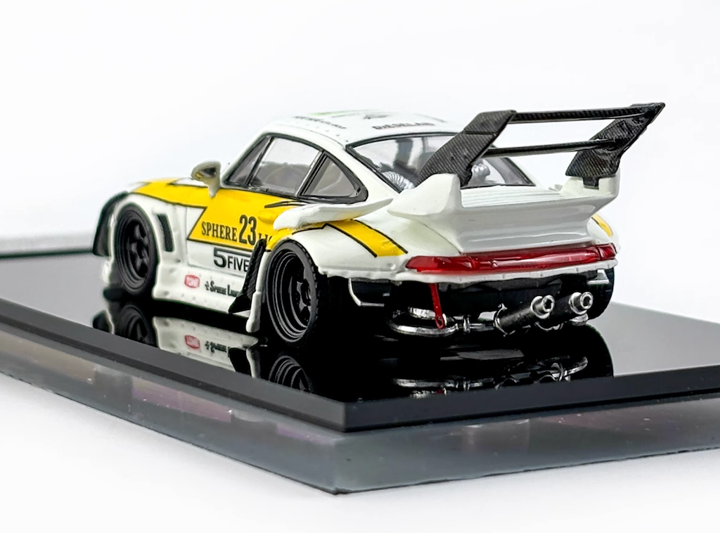 SW 1:64 Luminous Yellow 911 RWB 993 #23 Big Spoiler Model Diecast Metal Car