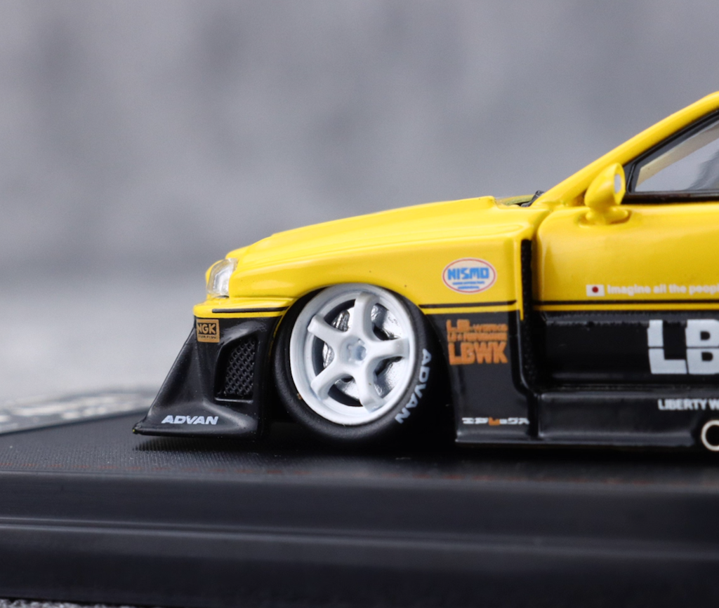 SW 1:64 Yellow Black Skyline GTR ER34 LBWK #5 Sports Model Diecast Metal Car