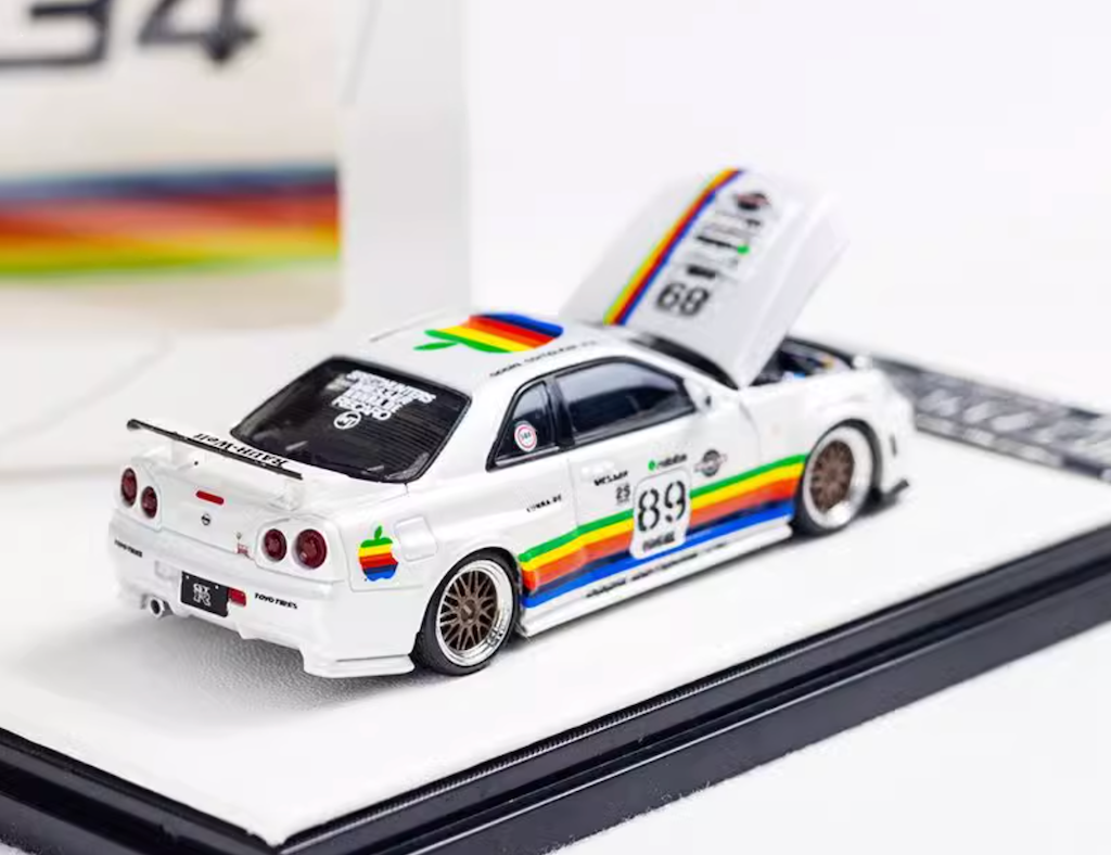 TM 1:64 Apple #89 JDM Skyline GTR R34 Sports Model Diecast Metal Car New Collection