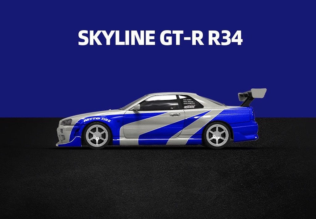 • Load image into Gallery viewer, TM 1:64 FNF Silver Blue Skyline GTR R34 Sports Model Diecast Metal Car New Collection
