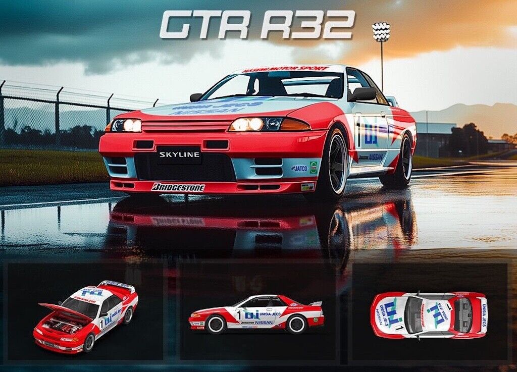 • Load image into Gallery viewer, TM 1:64 JDM Skyline GTR R32 BP Figure Racing Sport Model Diecast Metal Car New Collection