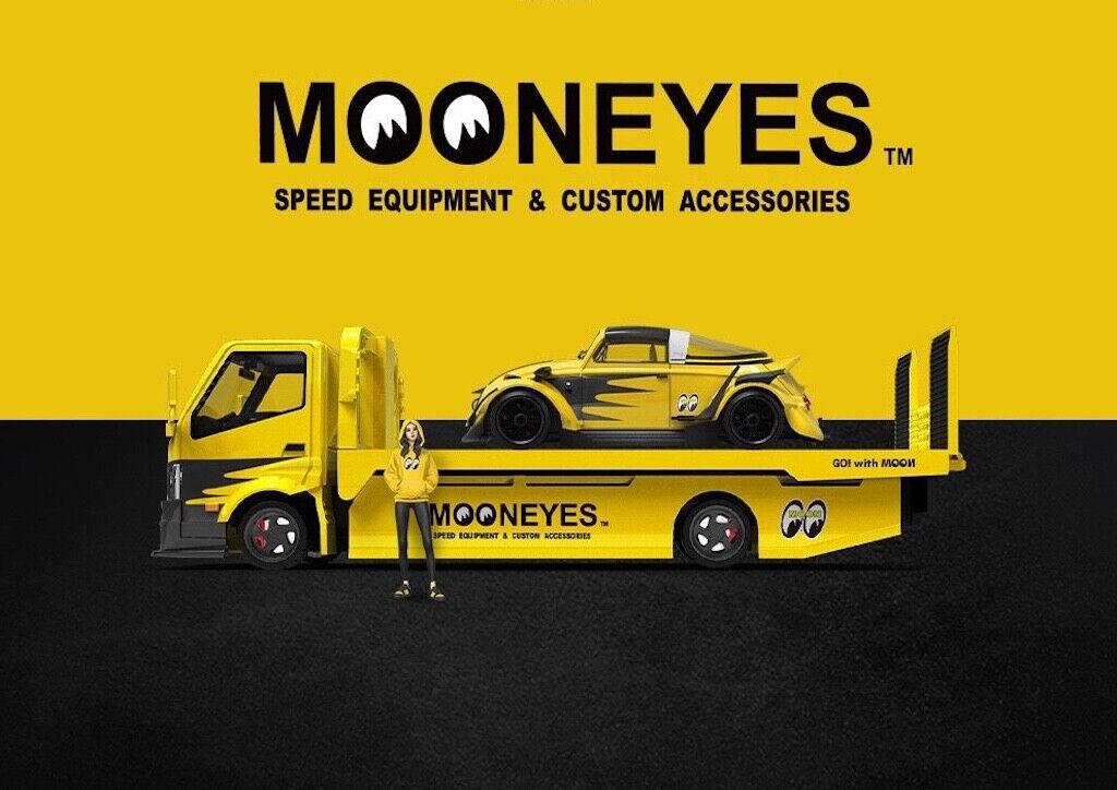 TM 1:64 Mooneyes Beetle H300 Flatbed Trailer Truck Model Diecast Metal Car New Collection