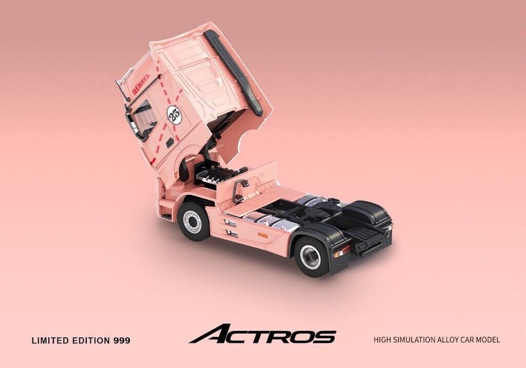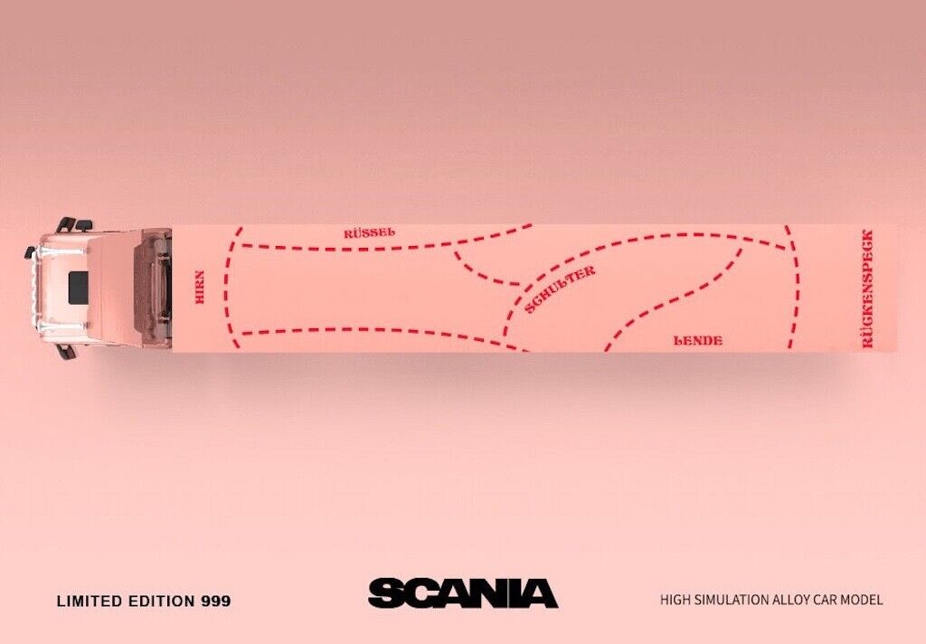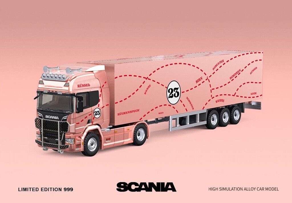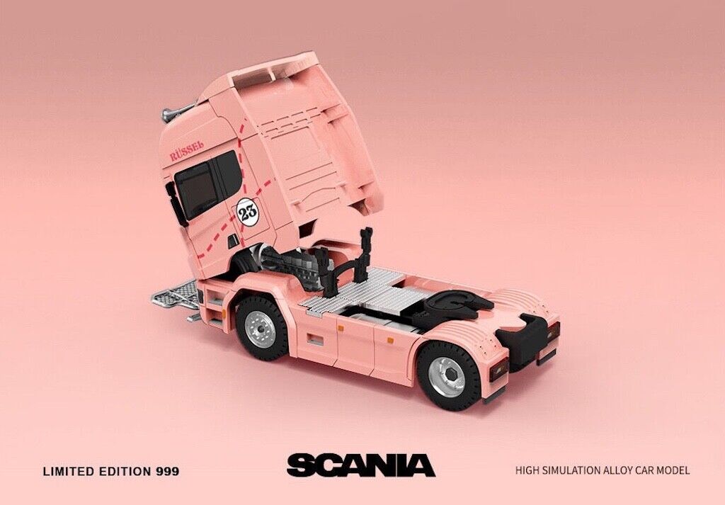 TM 1:64 Pink Scania Actros Container Delivery Truck Model Diecast Metal Car
