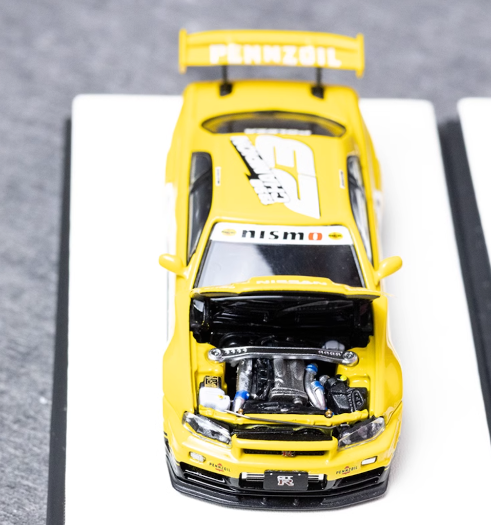 TM 1:64 Yellow Skyline GTR R34 Nismo Sports Model Diecast Metal Car New Collection