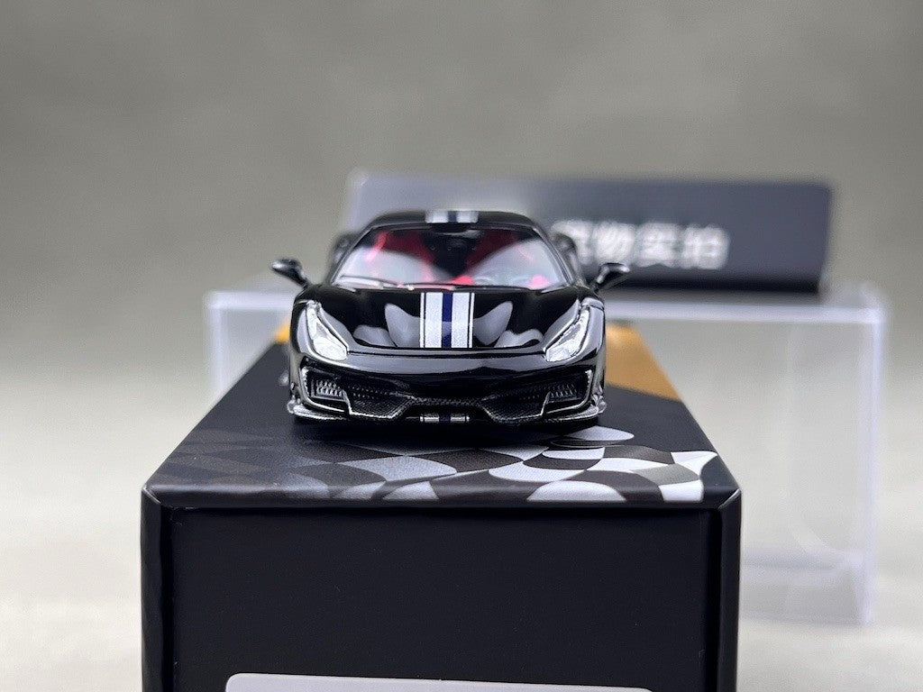 TOC 1:64 Black 488 Pista Coupe Racing Sports Model Diecast Metal Car New Collection