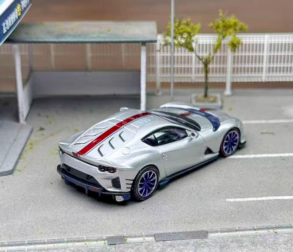 TOC 1:64 Silver Red Stripe 812C Coupe Sports Model Diecast Metal Car New Collection