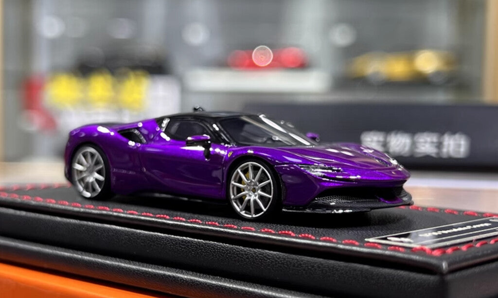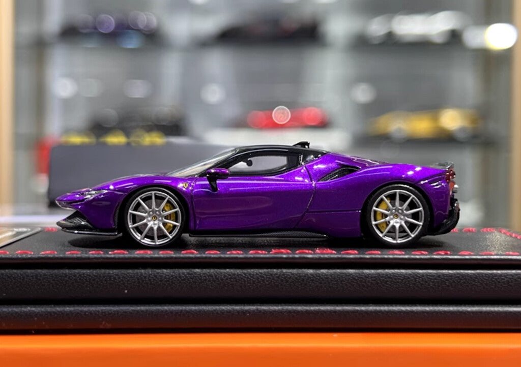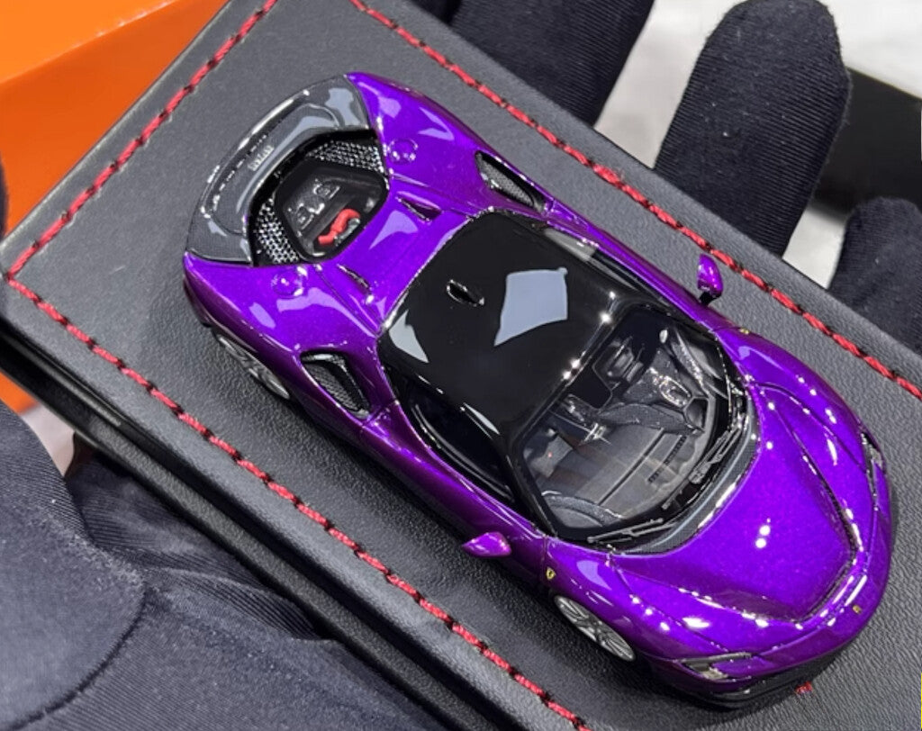U2 1:64 Purple SF90 Stradale Coupe Hard Top Sports Model Diecast Resin Car New Collection