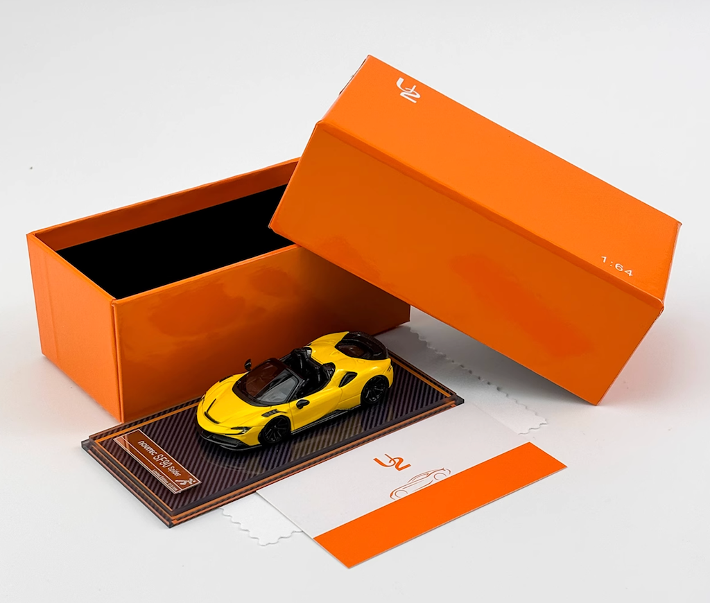 U2 1:64 Yellow Novitec SF90 Spider Convertible Sports Model Diecast Resin Car